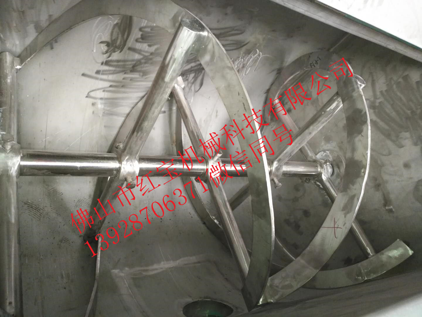 2、電機與攪拌主軸之間通過擺線針輪式減速機直聯或350型齒輪減速機皮帶減速,使用簡單,運行可靠度高,維護方便。電機為全新銅線優質電機,控制精確,使用壽命長。機器耐磨,耐用,生產安全,混合時間為5-8分鐘。混合時間短,機器蓋子可以打開,方便清理。內置大軸為加粗中心軸,絞龍主軸經車床修直,經動力平衡測試,運行時同地面垂直,保證運行用力均衡,提高使用壽命。