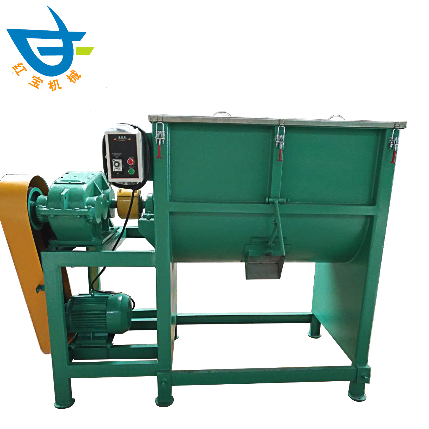 臥式筒體內(nèi)裝有雙軸旋轉(zhuǎn)反向的漿葉,漿葉成一定角度將物料沿軸向、徑向循環(huán)翻攪,使物料迅速混合均勻臥式混合機(jī)性能特點(diǎn)減速機(jī)帶動(dòng)軸的旋轉(zhuǎn)速度與槳葉的結(jié)構(gòu)會(huì)使物料重力減弱,隨著重力的缺乏,各物料存在顆粒大小、比重懸殊的差異在混合過(guò)程中被忽略。臥式攪拌桶內(nèi)有內(nèi)外兩層螺帶,在減速機(jī)的作用下,強(qiáng)勁有力地帶動(dòng)主軸的旋轉(zhuǎn),螺帶呈一定角度將物料沿軸向、徑向循環(huán)翻動(dòng)攪拌,在交錯(cuò)安置的螺帶快速劇烈的翻騰拋灑下,使物料快速攪拌混合均勻,能達(dá)到很好的混合效果。螺帶與桶壁的間隙可調(diào)至接近零位,有效地減少了物料殘留量,適合兩種以上物料的混合,出料口在設(shè)備下部,出料順暢,殘留量少。